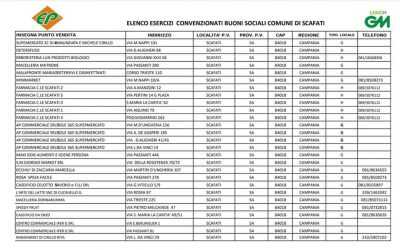 A Scafati – scrive il consigliere Michele Russo – risultano convenzionati per i buoni spesa, la cui distribuzione inizia domani (lunedì 20 aprile 2020), 28 esercizi (foto) a Cava de’ Tirreni 80.