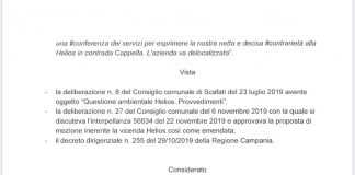 – se sia stata inoltrata richiesta all’ASL, all’ARPAC e alle altre autorità competenti di una relazione scritta al fine di un’eventuale ordinanza contingibile ed urgente da parte del Sindaco in merito alla chiusura del sito di stoccaggio “Helios”;