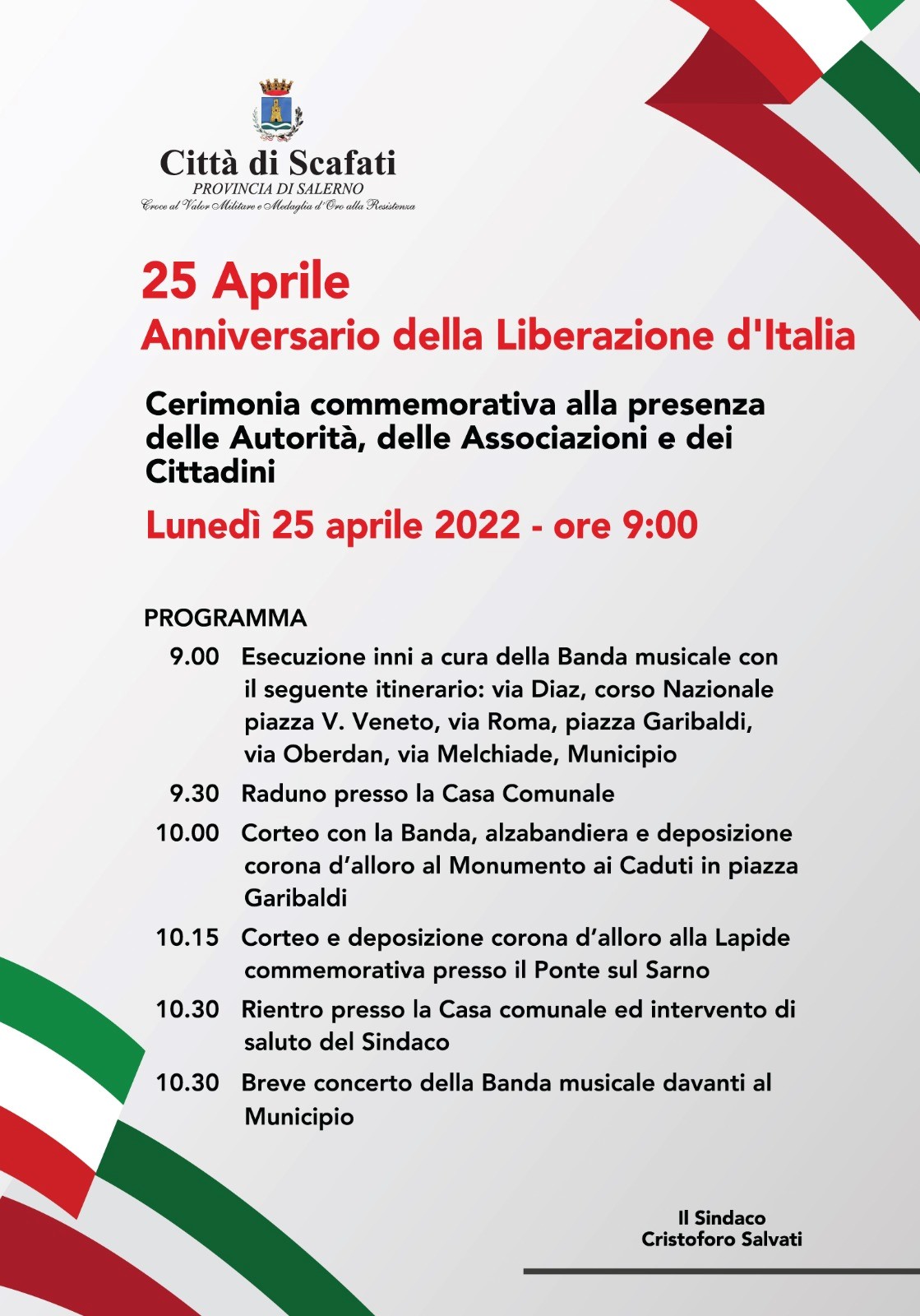 Scafati. Celebrazione del 25 Aprile, 77° Anniversario della Liberazione Nazionale