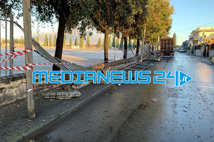 Scafati – Crolla la recinzione dell’area mercato, sfiorata la tragedia!