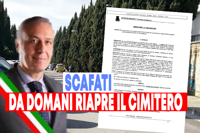 Questa mattina il Sindaco Cristoforo Salvati ha firmato l’ordinanza n.17 che, a parziale rettifica dell’ordinanza n.16 dell’8.03.2021, dispone l’apertura al pubblico del cimitero di viale Della Gloria a partire dal 19.03.2021