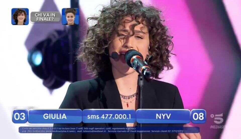 Ha vinto un testa a testa con Nyv, l’altra sfidante. Giunta alla fase finale, la 21enne di Scafati, ha superato l’avversaria con i seguenti 3 brani: “Domeniche di Maggio” (scritta da lei), “Meraviglioso amore mio” e “Chiamami ancora amore”.