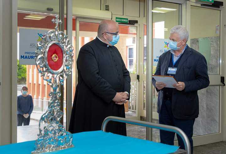 La reliquia di San Francesco di Paola visita il Presidio Ospedaliero “Mauro Scarlato” di Scafati. La presenza del Santo della Carità nell’ospedale è stata l’espressione del nostro grazie alle donne e gli uomini che in questi mesi hanno dato lustro alla nostra Città con la loro professionalità. Nella voce rotta dall’emozione del direttore dott. Maurizio D’Ambrosio tutta la tensione accumulata in questo periodo ma anche il segno della bella umanità dei nostri medici e degli operatori ospedalieri. Grazie!