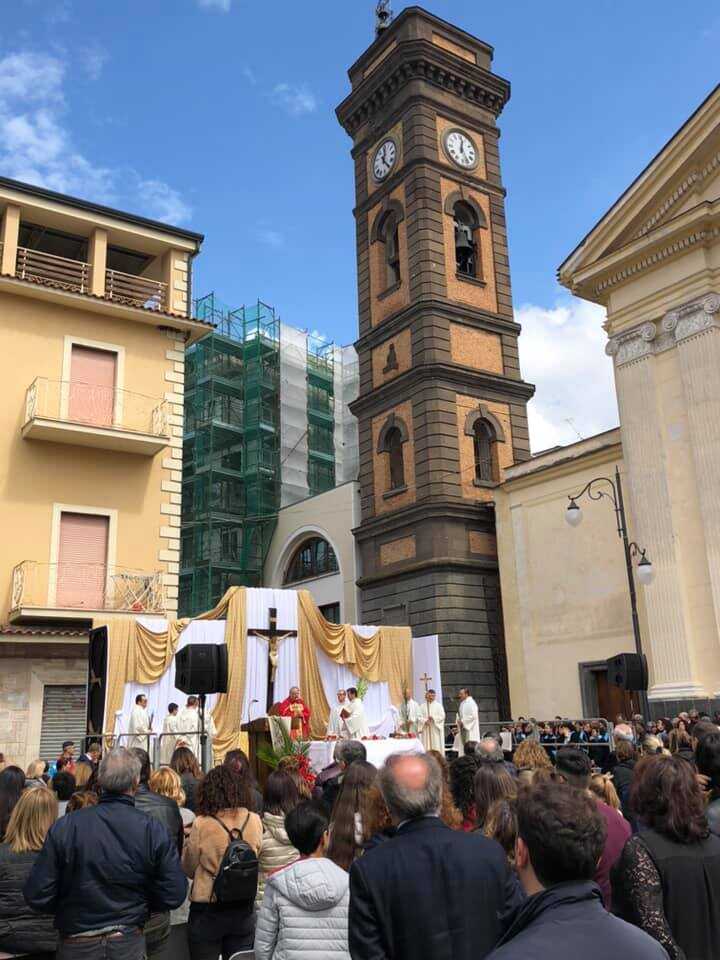 Domenica delle Palme, in una piazza gremita il Parroco Don Giovanni ha annunciato che giovedì 18 Luglio la statua di Santa Maria delle Vergini, patrona di Scafati, ritornerà nella sua città più bella che mai. Applausi dei fedeli presenti, una gran bella notizia.
