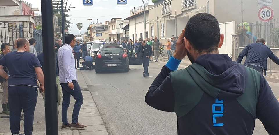 Bilancio: due feriti, il migrante colpito alle gambe da alcuni colpi di pistola e il militare libero dal servizio ferito a una mano da una coltellata sferrata dal migrante. Il tutto è accaduto in via Poggiomarino all’altezza del civico 144. Il migrante, probabilmente ubriaco, ha cominciato a lanciare sassi sulle auto in transito e contro i negozi della zona. Una grossa pietra stava anche per colpire un ciclista. Poi ha incendiato due copertoni in strada. Qualcuno aveva anche chiamato il 112. E’ arrivata una pattuglia. Nel frattempo è arrivato un carabiniere, libero dal servizio e che abita in zona, che ha cercato di fermarlo. Tra il carabiniere e il migrante c’è stata una colluttazione e il militare è stato ferito a una mano da una coltellata sferrata dal giovane nigeriano.Poi il migrante ha cercato di scagliarsi anche contro i carabinieri della pattuglia, brandendo il coltello, ed è stato ferito alle gambe.