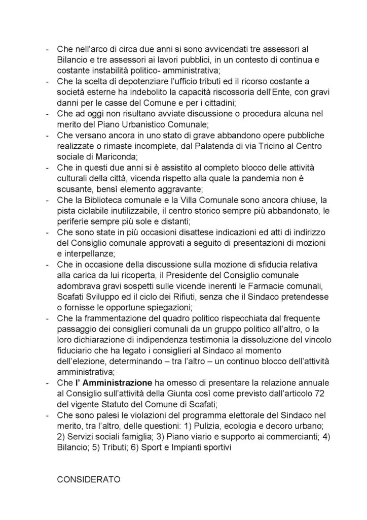 ECCO LA LETTERA DI SFIDUCIA PRESENTATA DAI CONSOGLIERI