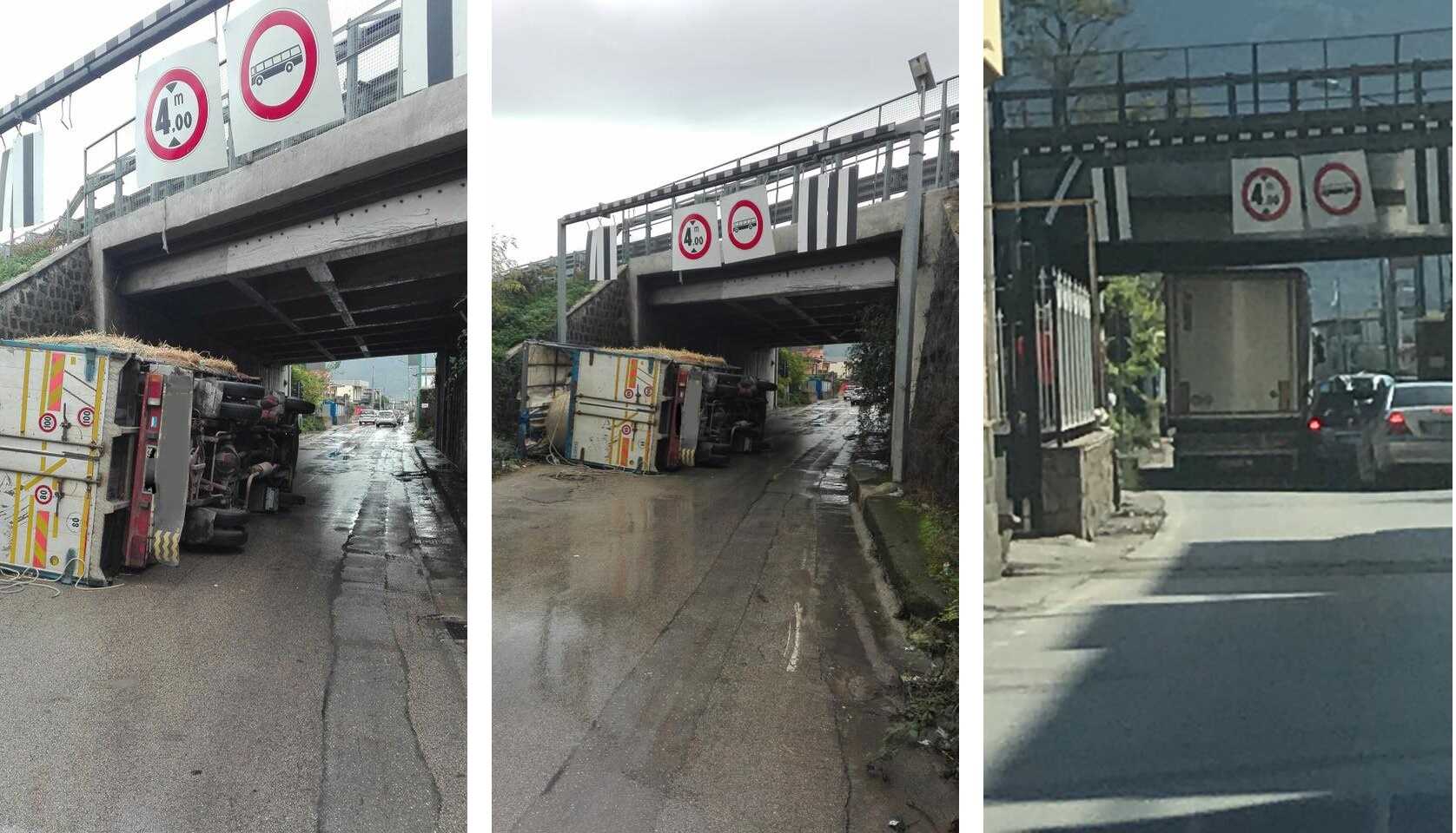 Ci passa o non ci passa? La domanda ormai è diventata di rito, anche se fa riferimento ad una cosa sulla quale vige un divieto riportato a caratteri più che cubitali. Ogni camionista che percorre via Sant’Antonio Abate a Scafati e arriva al ponte autostradale si pone lo stesso interrogativo. I fatti di cronaca che suscitano continuamente perplessità sono ormai sempre gli stessi: camion incastrati sotto al ponte, camion addirittura ribaltati. Intanto, i malumori non si contano più.
