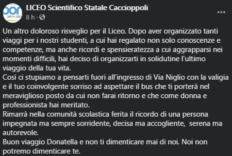 Dopo poche ore dalla sua scomparsa, sulla pagina del Liceo Caccioppoli è stato pubblicato un lungo e commovente messaggio.