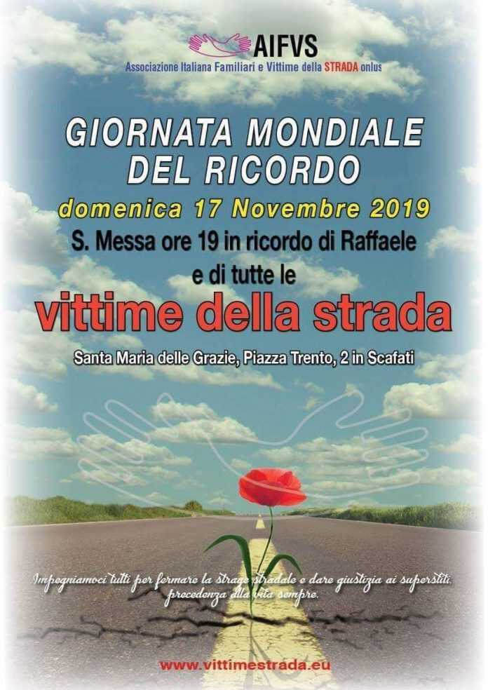 Era il 14 agosto quando Raffaele Manna e la sua fidanzata Stefania venivano presi in pieno da una macchina invischiata in un sorpasso azzardato. Oggi, a distanza di mesi Stefania si impegna in nome del suo fidanzato che non c’è più in una lotta continua affinché non ci siano più vittime della strada. Così, in occasione della ricorrenza della Giornata mondiale delle vittime della Strada, Stefania Battipaglia, in collaborazione con la Responsabile di sede AIFVS onlus e progetti per deby onlus, Teresa Astone, invita tutti a partecipare ad una Santa Messa che si terrà in ricordo di Raffaele e di tutte le vittime della strada domenica 17 novembre alle ore 19.00 presso la chiesa di Santa Maria delle Grazie a Scafati. L’invito è rivolto a tutti, tutta la cittadinanza di Pagani e Scafati.