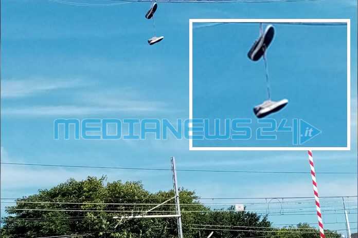 Chi sarà l’appassionato di cultura metropolitana che ha lanciato un paio di scarpe ginniche in via Achille Grandi in prossimità della stazione?