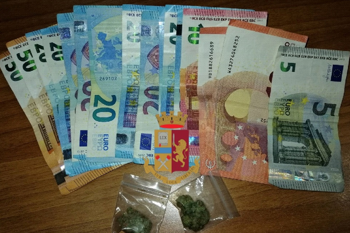 I poliziotti lo hanno raggiunto e bloccato trovandolo in possesso di due involucri con 2 grammi circa di marijuana nella tasca dei jeans e di 335 euro.
