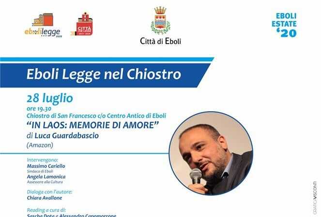Stasera secondo appuntamento di Eboli Legge nel Chiostro con inizio alle ore 19.30. Nella suggestiva cornice del secolare chiostro di San Francesco, cuore del Centro Antico, l’autore Luca Guardabascio racconterà il suo romanzo “In Laos, Memorie di un amore”. Nelle pagine del libro, ritornano le scottanti ed attualissime tematiche dell’emigrazione, dello slancio verso il viaggio, della società avida e senza pietà.