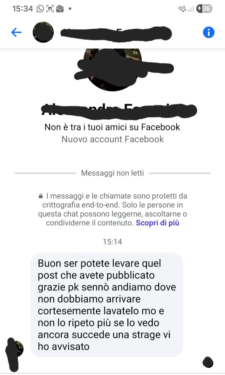 Ho ritenuto doveroso denunciare questa cosa, perché la scuola non è un palco elettorale e gli studenti non sono strumenti di propaganda. Da quel momento, io e mia moglie abbiamo ricevuto messaggi minatori. Uno in particolare, che allego, è esplicito: mi si intima di rimuovere il post, altrimenti “succede una strage”. Parole gravi, che non possono essere liquidate come goliardia o nervosismo da campagna elettorale. Ho già sporto querela. Perché chi minaccia deve rispondere davanti alla legge. Ma soprattutto perché nessuno dovrebbe sentirsi autorizzato a intimidire chi esercita un diritto civico: quello di parlare, denunciare, chiedere rispetto.
