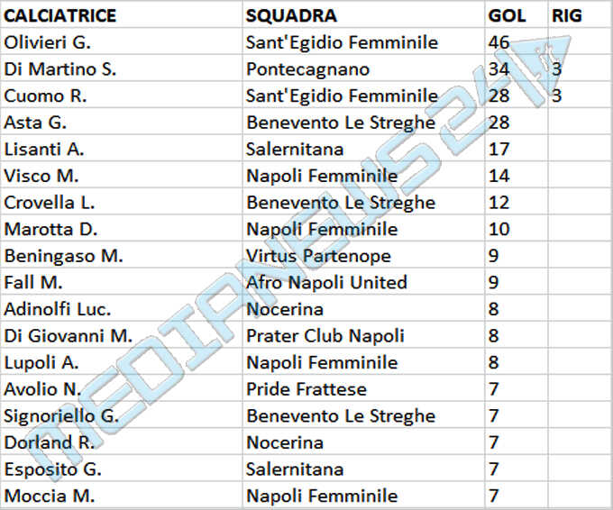 Serie C femminile. La classifica delle bomber dopo 15 giornate