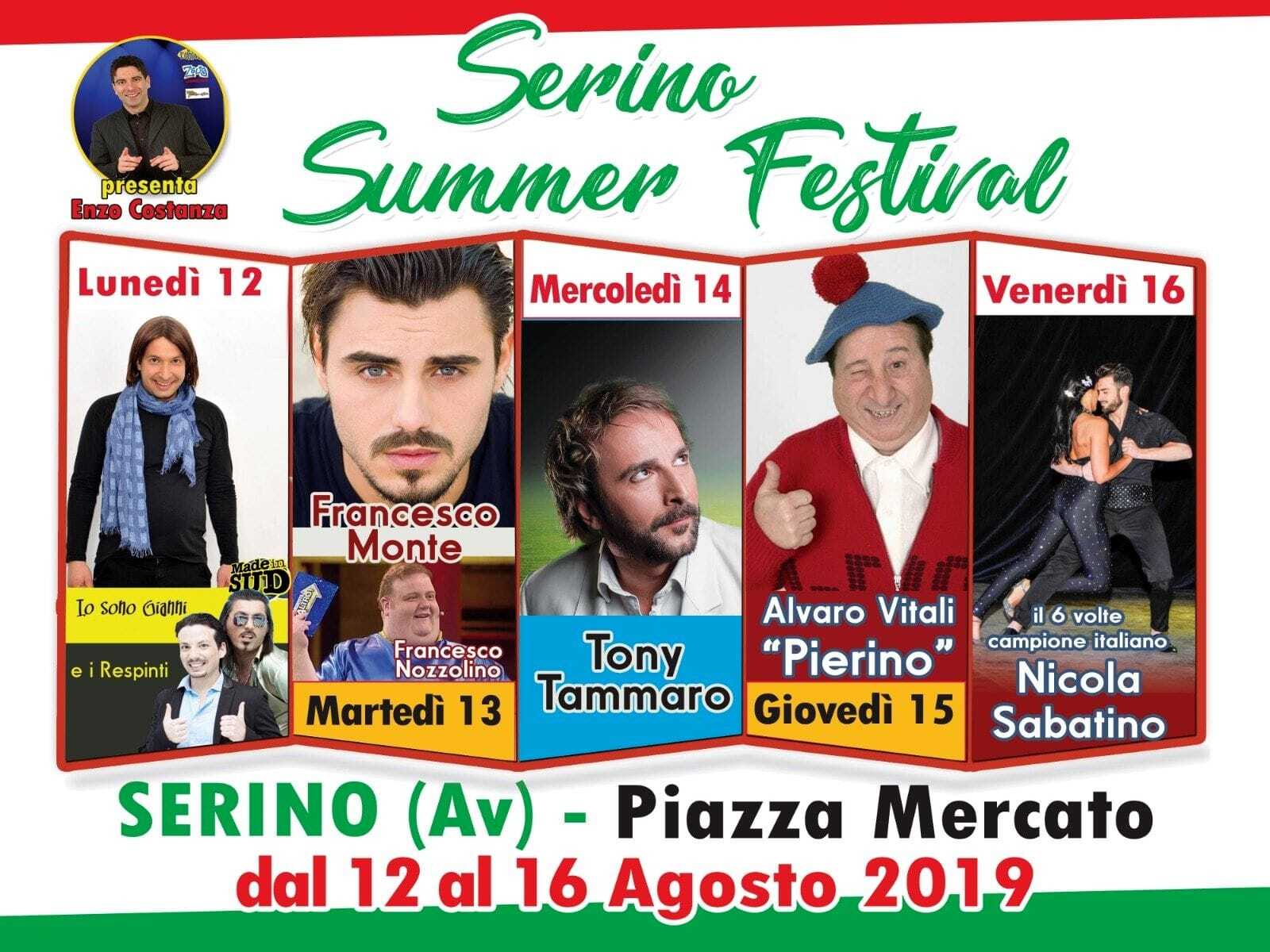 Grandi eventi in Campania: dal 12 al 16 agosto in scena il “Serino Summer Festival” che torna sulla scena regionale evolvendosi da “Gran Galà della Pizza” a “Serino Summer Festival”. L’appuntamento è, come sempre, nella centralissima piazza mercato presso la frazione Sala di Serino. La manifestazione promossa dall’Associazione E20 ha ottenuto il patrcinio dell’Amministrazione Comunale di Serino attraverso l’Assessorato al Turismo e alle Politiche Giovanili, vantando, inoltre, numerose collaborazioni come quella con l’Associazione “IDEA Irpinia – #ideairpinia” e il Forum dei Giovani di Serino.