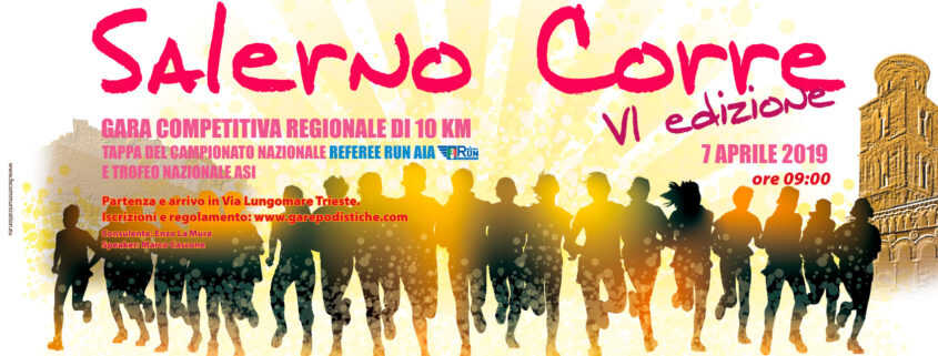 Mercoledì 3 aprile, nella Sala del Gonfalone del Comune di Salerno, alle ore 10.30, si terrà la conferenza stampa di presentazione della sesta edizione della “Salerno Corre”, gara di 10 km organizzata dall’ASD Atletica Arechi Salerno. La competizione, approvata dalla FIDAL Campania, costituisce la IV tappa del campionato italiano Referee Run A.I.A., III tappa del trofeo “Salerno Corre verso Polla” ed è valevole come campionato nazionale ASI.