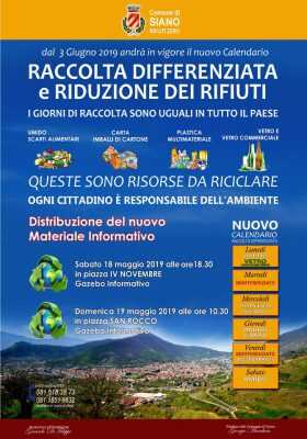 NewsSiano, cambia il calendario della raccolta differenziataDi redazione mn24 - 16 Maggio 20190276FacebookTwitterPinterestWhatsApp Nuovo Calendario per la Raccolta Differenziata, ecco i dettagli come da manifesto