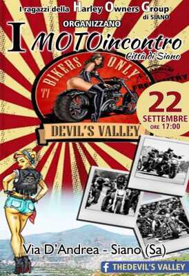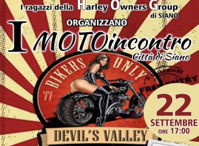 Moto incontro a Siano per il prossimo 22 settembre. Il raduno, rivolto ad appassionati di Harley Davidson e non   offrirà ai visitatori un ricco programma di eventi per tutta la serata. Live music, birra a volontà, stand gastronomici, motogiro per la città.
