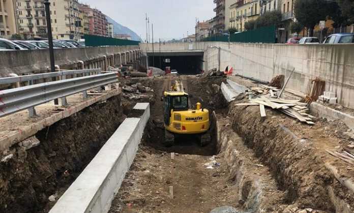 Proseguono i lavori per la sistemazione delle vasche di raccolta acque, necessarie e funzionali all’impianto antincendio del parcheggio realizzato sotto il trincerone ferroviario. Dopo una serie di difficoltà ed imprevisti è stata realizzata la palificata di contenimento, il livellamento del fondo, tra qualche giorno sarà realizzato il massetto dove saranno poggiati i contenitori, successivamente sarà posizionata la chiusura carrabile.
