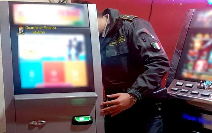 La guardia di finanza ha individuato e sequestrato a Battipaglia 5 apparecchi elettronici “slot”, in funzione senza le dovute autorizzazioni e non collegati alla rete statale di raccolta del gioco. Sotto sequestro anche il denaro contenuto negli apparecchi elettronici. Al titolare del bar controllato sono state comminate sanzioni superiori a 100mila euro.