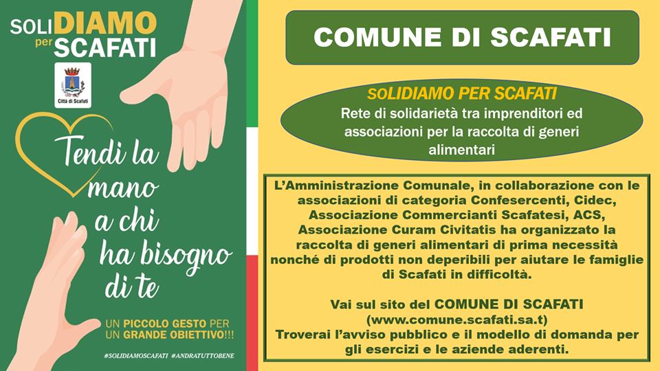 Promossa dalla Amministrazione comunale, in particolare dai Settori “Attività produttive e Commercio” e “Servizi al cittadino”, dalla Commissione Commercio, in collaborazione con le associazioni di categoria Confesercenti, Cidec, Associazione Commercianti Scafatesi, ACS e Associazione Curam Civitatis, viene presentata dal sindaco Salvati a mezzo social.