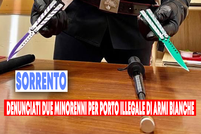I Carabinieri del Nucleo Radiomobile di Sorrento, ieri pomeriggio, hanno denunciato in stato di libertà alla Procura della Repubblica presso il Tribunale per i Minorenni di Napoli due minori provenienti da Casoria (Na), ritenuti responsabili di porto illegale di armi bianche.