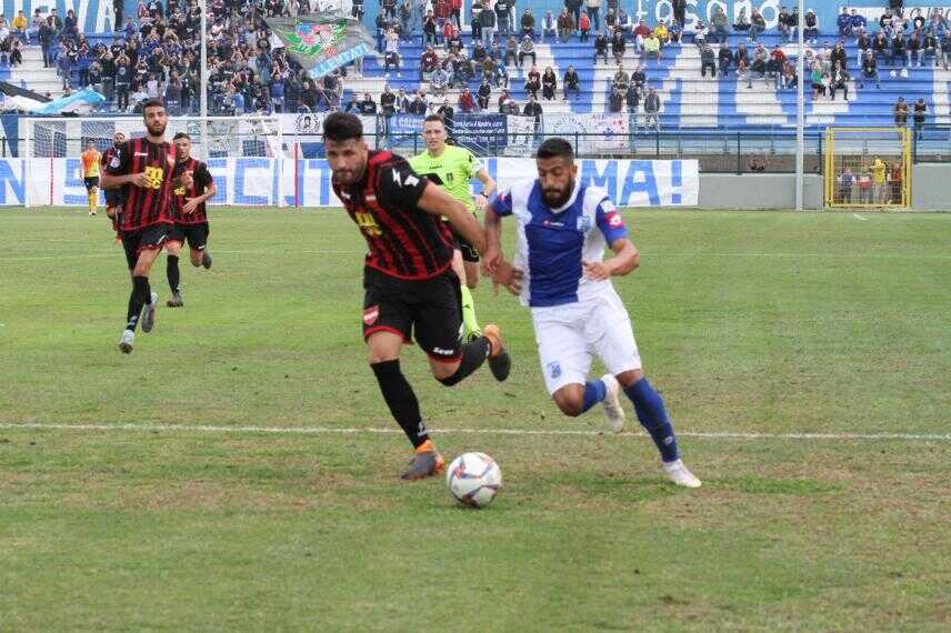 Todisco impegna il portiere di casa che è costretto a ricorrere alla respinta con i pugni. La risposta dei biancazzurri arriva al 6’ con un tiro dalla distanza di Ganci che costringe alla respinta corta Leone con Formuso che su ribattuta manca di poco lo specchio della porta. Azione personale di Montaldi al 12’ con un tiro da fuori con palla a girare che colpisce il palo, complice la decisiva deviazione del portiere campano. Si supera ancora Leone al 24’ per spedire in corner un tiro al volo di Corvino dal limite. Grossa occasione per Formuso al 27’ che, servito bene da Tuttisanti, chiama nuovamente in ballo il portiere che si rifugia in angolo. Nella ripresa al 7’ punizione dal limite di Corvino con palla direttamente sulla barriera. Palla filtrante di Tuttisanti al 10’ per Cobo che non riesce a dare la giusta angolazione al tiro per battere a rete. La risposta ospite giunge su punizione al 17’ con De Angelis che chiama Guarnieri alla deviazione in corner. Al 22’ è Montaldi che ha la ghiotta occasione per insaccare, ma Leone in uscita respinge con i piedi. Il vantaggio dei padroni di casa arriva al 28’ con Diop che serve per il neoentrato Nadarevic bravo a trovare la giusta coordinazione per battere a rete con una parabola imprendibile. Il Sorrento sembra alle corde, ma trova il pari al 40’, approfittando di un errato disimpegno sulla fascia che porta ad uno svarione difensivo, con Todisco che realizza, dopo un batti e ribatti, a porta vuota. Il Fasano non ci sta e con Corvino al 44’ impegna severamente il portiere ospite. Passano solo due minuti ed arriva il nuovo vantaggio locale, quello definitivo: Corvino cross a centro, rimpallo di Montaldi e Gomes Forbes bene appostato sul secondo palo insacca.