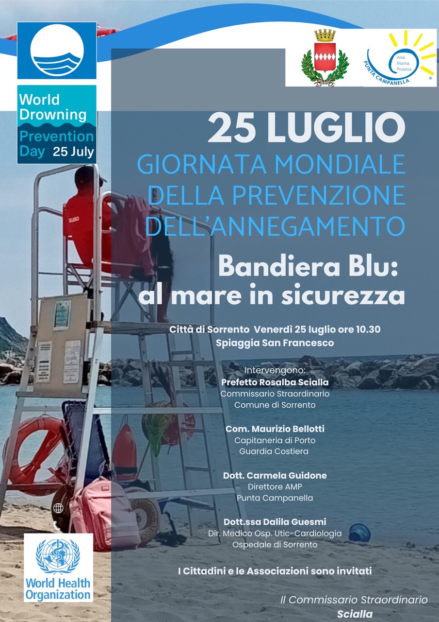 Anche la Città di Sorrento, come altre località insignite del riconoscimento Bandiera Blu, dedica questa giornata all’informazione e alla formazione attraverso incontri con istituzioni ed operatori, dimostrazioni ed esercitazioni sulla sicurezza in spiaggia e sul primo soccorso.