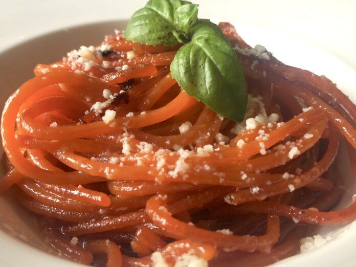 Il consiglio? Avere in dispensa almeno due confezioni di spaghetti al peperoncino (nel mio caso sono quelli de “La Fabbrica della Pasta” di Gragnano, un’azienda all’avanguardia e che propone vicino ai classici formati, anche quelli speciali.