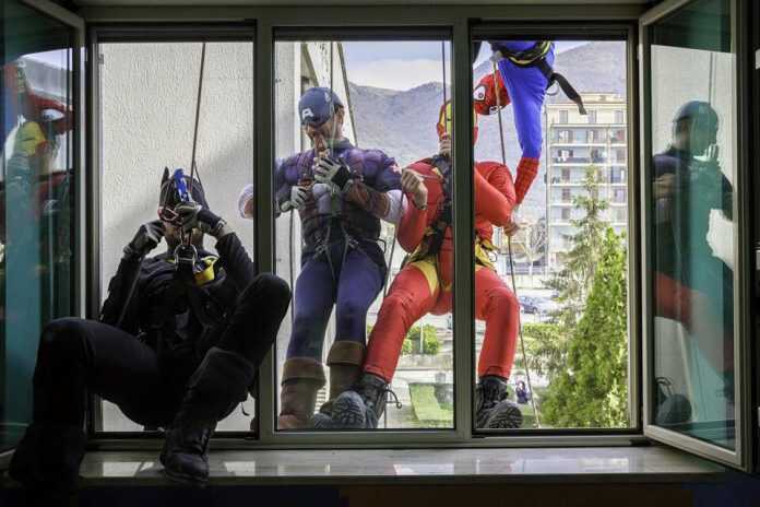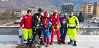 Supereroi in azione a Polla per far sorridere tanti bambini. È stata una sorpresa davvero speciale quella di un gruppo di volontari per i bambini ricoverati al reparto di pediatria dell’ospedale Curto. Nel mezzo della mattinata di ieri i volontari della Protezione Civile Vallo di Diano, si sono introdotti nel reparto in questione calandosi con delle corde e entrando nel locale attraverso una finestra. Insomma, una vera e propria irruzione.