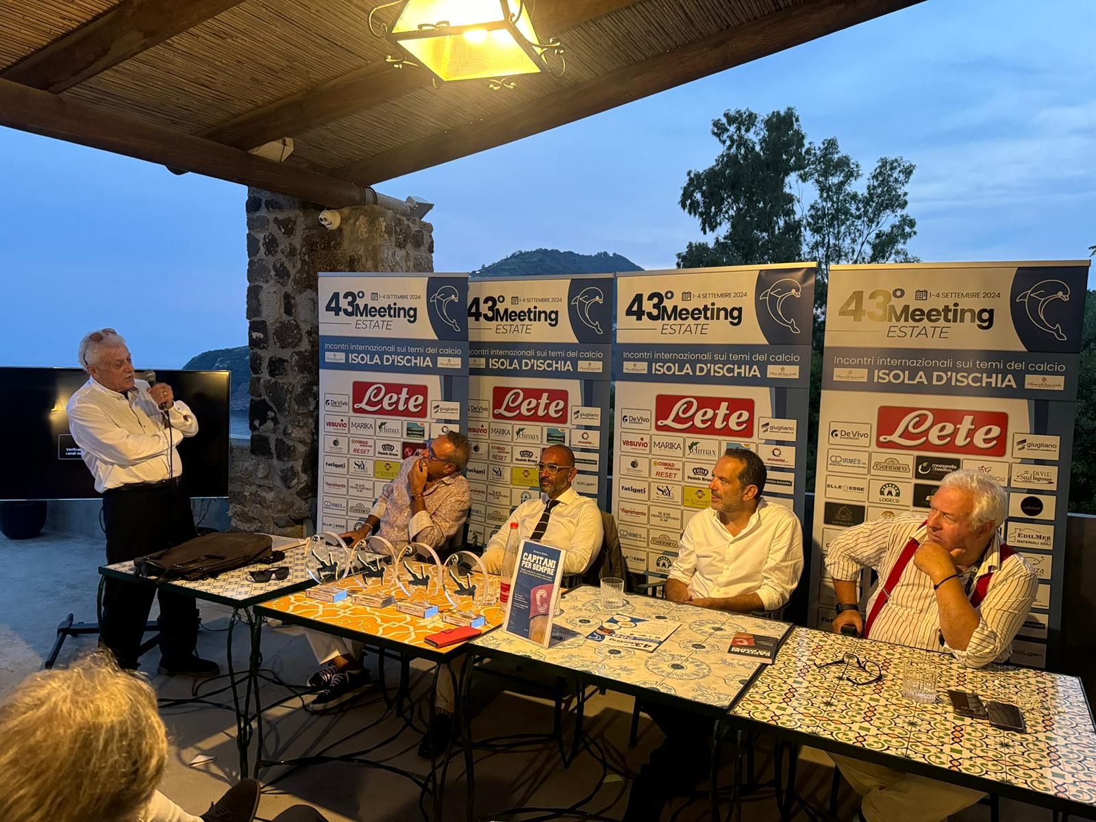 Per la sezione “Football Players Legends 2024” il premio è andato all’ex calciatore del Napoli Stefan Schwock. Nell’ambito della serata è stato presentato il libro di Gianfranco Coppola “Capitani per sempre” edito da Le varie di Marco Lo Basso che ha voluto omaggiare il patron del Meeting Estate Franco Campana e la storica bandiera dell’Ischia calcio Franco Impagliazzo con un particolare riconoscimento. A conclusione della prima giornata del meeting, il “Memorial Carlo Iuliano”: il premio celebra la figura del primo addetto stampa del Napoli Calcio, pregiata penna del giornalismo italiano scomparso 13 anni fa e quest’anno è stato assegnato al giornalista Franco Esposito.