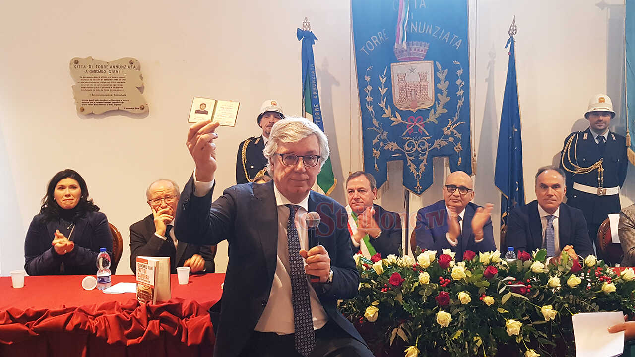 Con queste parole il sindaco di Torre Annunziata Vincenzo Ascione ha conferito la cittadinanza onoraria a Giancarlo Siani, il giornalista de “Il Mattino” ucciso dalla camorra il 23 novembre 1985.