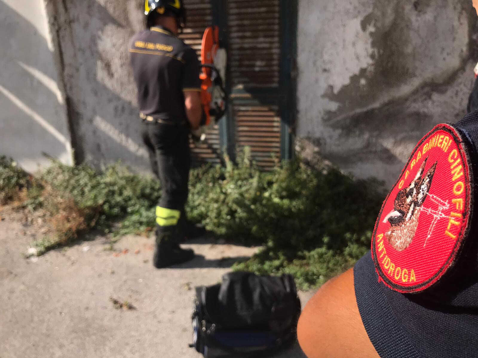 I Carabinieri ed i Vigili del Fuoco sono entrati nel cuore del quadrilatero ed hanno trovato un caricatore con proiettili, varie cartucce calibro 12 e 30 dosi di marijuana.