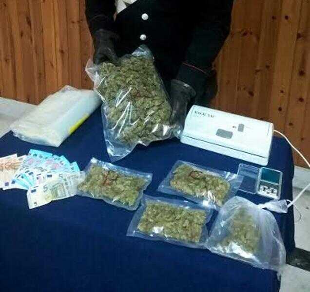 Dietro un mobile della cucina sono stati poi trovati e sequestrati 4 involucri contenenti altri 200 grammi di marijuana, un bilancino di precisione ed una macchina per il sottovuoto con sacchetti per il confezionamento, oltre che 210 euro, ritenuti provento di attività illecita.