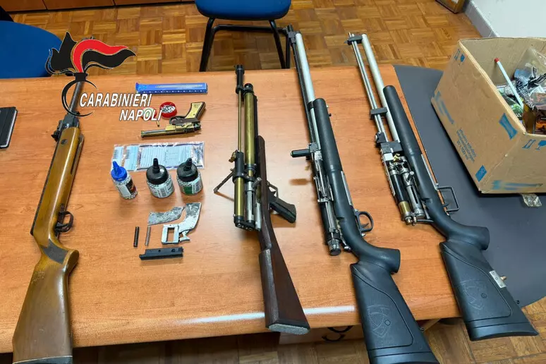 Nell’abitazione sono stati inoltre trovati una pistola calibro 22, tre fucili ad aria compressa di fabbricazione artigianale, inneschi per proiettili, buste di pallini in ferro e diversi componenti meccanici di armi ancora da assemblare. Il materiale conferma che l’uomo era in grado di modificare o costruire armi in autonomia.