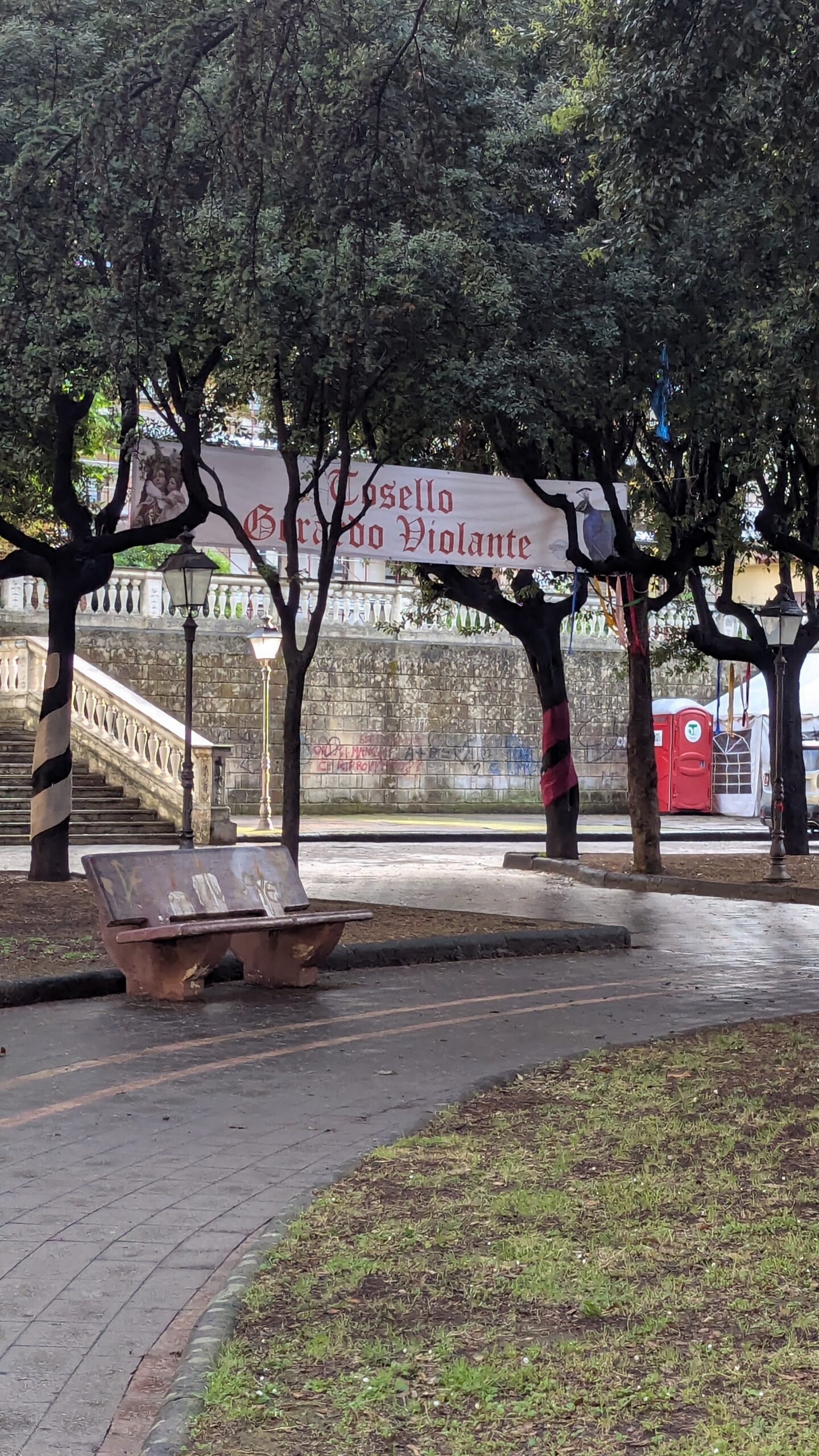 Stamani, alle ore 11, si è tenuta presso il salone dell’Annunziatella la conferenza stampa di presentazione del programma civile e religioso della Festa della Madonna delle Galline. Presenti i profili istituzionali e le autorità della confraternita. La stampa, invitata per l’occasione, ha potuto anche visitare la mostra fotografica curata dal gruppo Ambress Ampress, un tuffo negli anni ’90 attraverso scatti che ritraggono signore fiere e sorridenti mentre suonano e danzano nella villa comunale, nel pieno di quei movimenti che un tempo erano tradizione viva, e non spettacolo per lenti indiscrete. Ma c’è una foto, in particolare, che sembra sfuggire agli occhi più attenti. Un’immagine che racconta molto più di quanto si vede: un frammento di memoria popolare che grida silenziosamente il significato affettivo di quel luogo per quelle donne, per quella comunità. Oggi, nello stesso luogo, la stessa villa comunale, c’è un “tosello” tra i 31 dislocati per la città. Anzi no: per il Comune è un punto di ristoro. I punti di ristoro ne sono 2, uno in villa comunale e l’altro a Largo La Fenice che, quest’ultimo, vista la coerenza del caso, ha dato un nome diverso, appunto, “Punto di ristoro” e non “Tosello“. Nel nostro caso, si tratta di un’ibridazione che lascia riflettere.