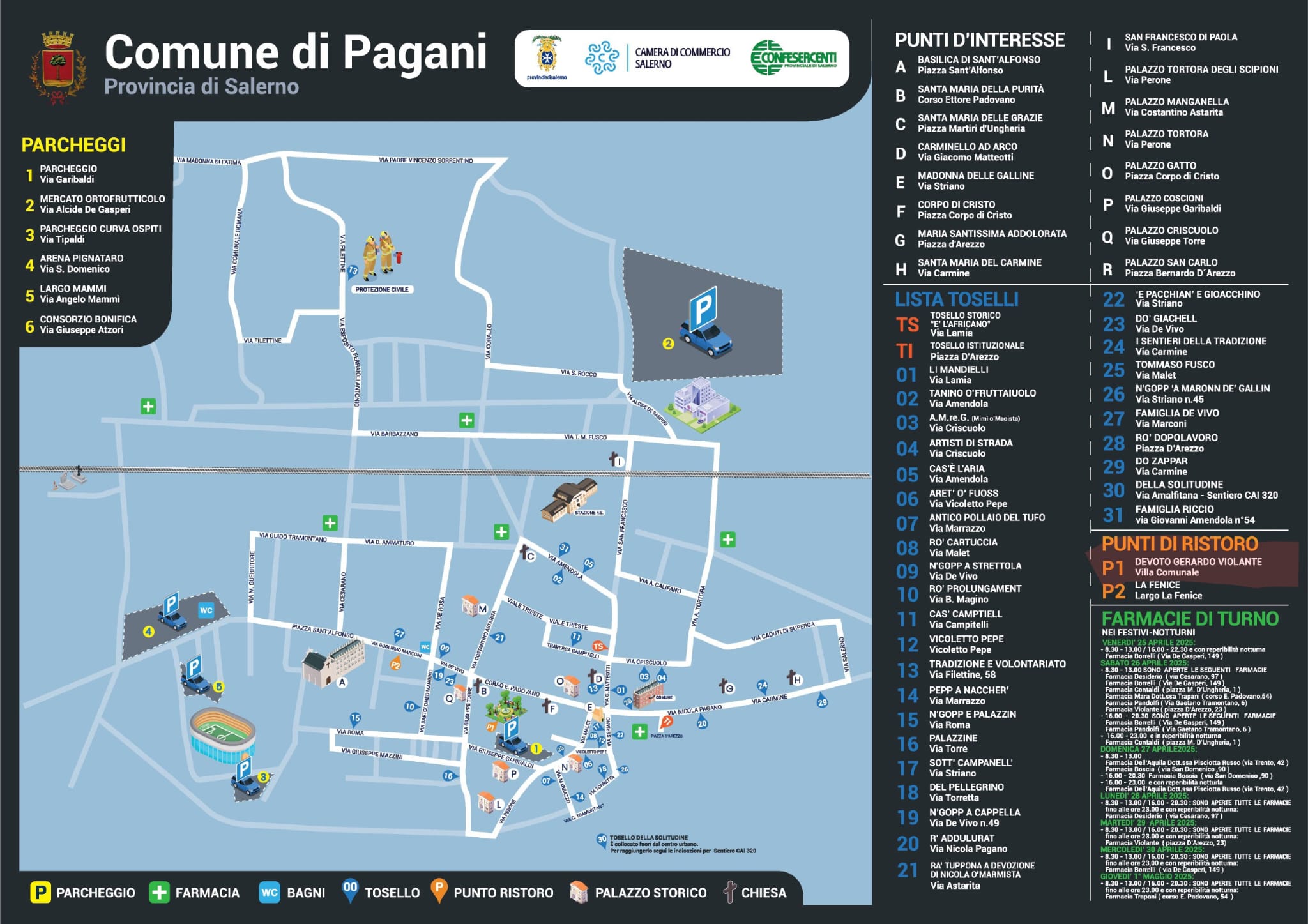 C’è uno striscione il cui nome riporta “tosello”, però poi sulla brochure comunale compare “punto di ristoro”. Inoltre, in uno spazio, dove sono gli stand, sono scomparse le giostre.
