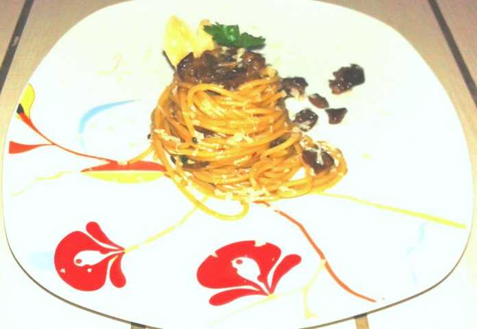♥Man mano che mescolerete gli spaghetti, questi si scuriranno perchè prenderanno il colore dei funghi porcini.