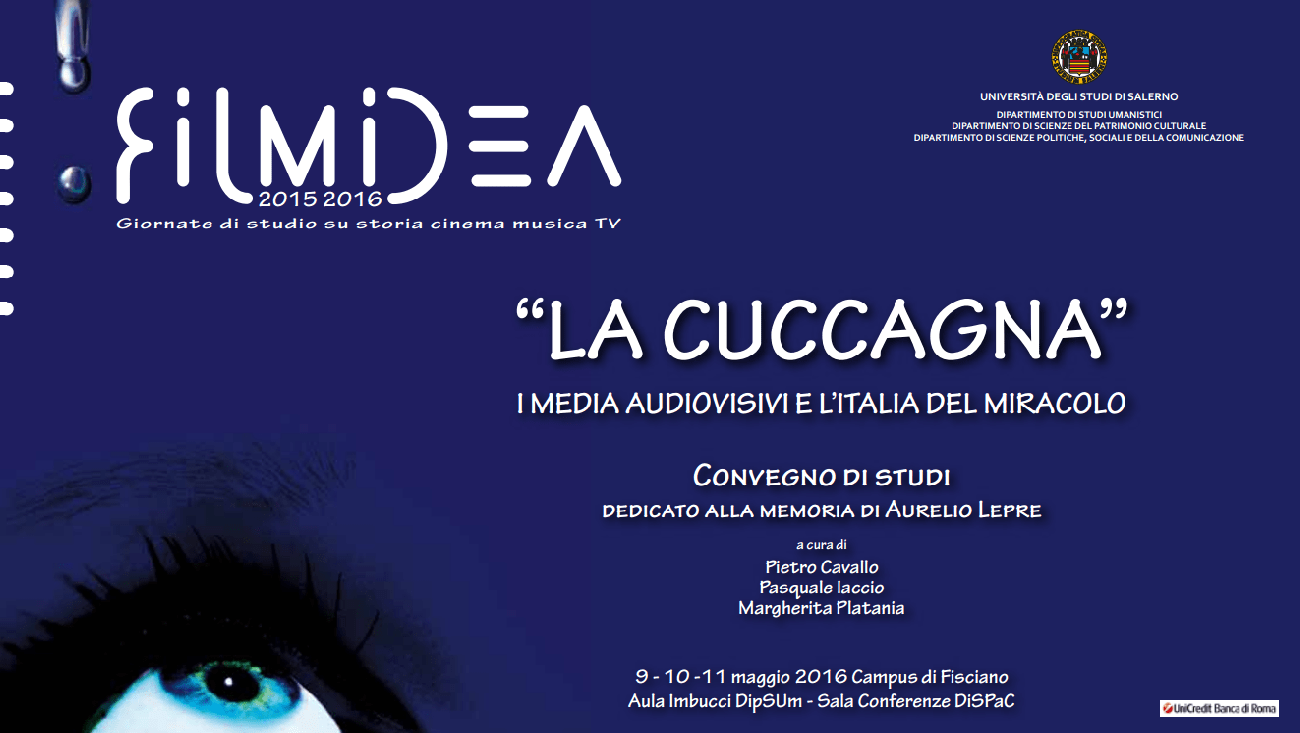 Nell’aula Imbucci del Dipsum e nella Sala Conferenze del Dispac si terrà dal 9 all’11 maggio il convegno di studi “La cuccagna”. I media audiovisivi e l’Italia del miracolo, curato da Pietro Cavallo, Pasquale Iaccio e Margherita Platania e dedicato alla memoria dello storico Aurelio Lepre.