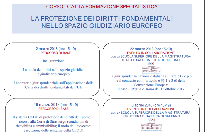 Unisa. Corso “La protezione dei diritti nello spazio giudiziario europeo”