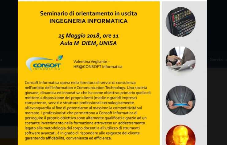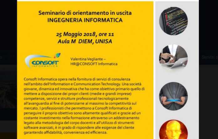 In costante contatto con il mondo del lavoro, il Dipartimento DIEM UNISA continua il suo ciclo di seminari di orientamento in uscita per gli studenti di Ingegneria Informatica.