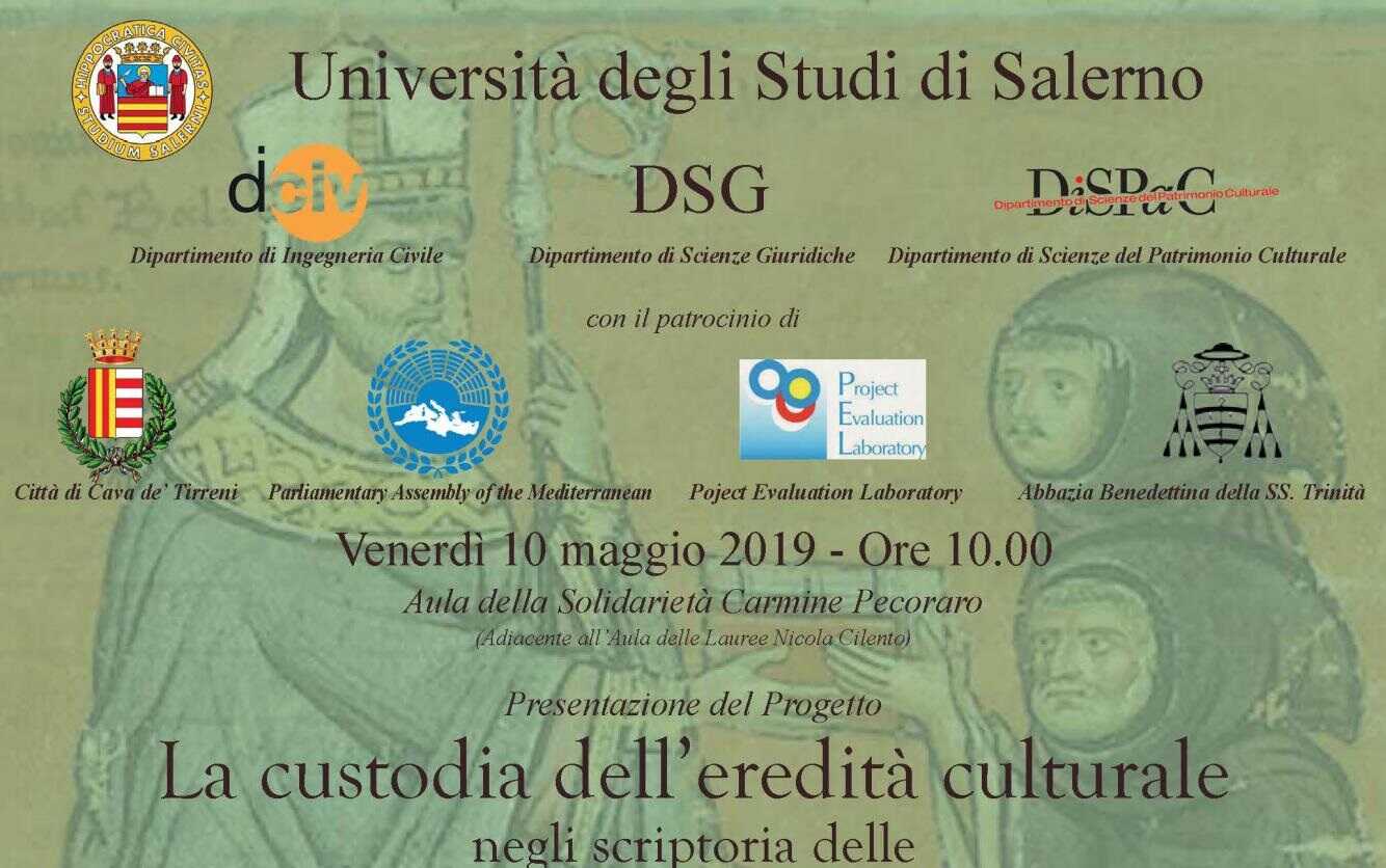 Domani alle ore 10.00, presso la Sala della Solidarietà “Carmine Pecoraro” al campus di Fisciano, si terrà l’incontro di studi dal titolo “La custodia dell’eredità culturale negli scriptoria delle Grandi Abbazie”. L’evento è organizzato dal Dipartimento di Ingegneria Civile e dai Dipartimenti di Scienze Giuridiche e di Scienze del Patrimonio Culturale dell’Università di Salerno.