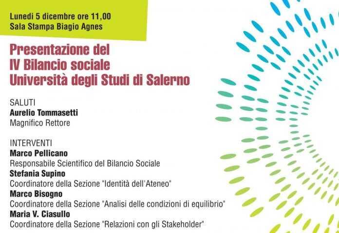 Lunedì 5 dicembre, alle ore 11.00 presso la Sala Stampa “Biagio Agnes” del campus di Fisciano, si terrà la Presentazione del Bilancio Sociale dell’Università di Salerno, giunto alla sua quarta edizione. Nel corso dell’incontro – dopo i saluti del Rettore Tommasetti – sarà presentato il nuovo volume ai partecipanti.