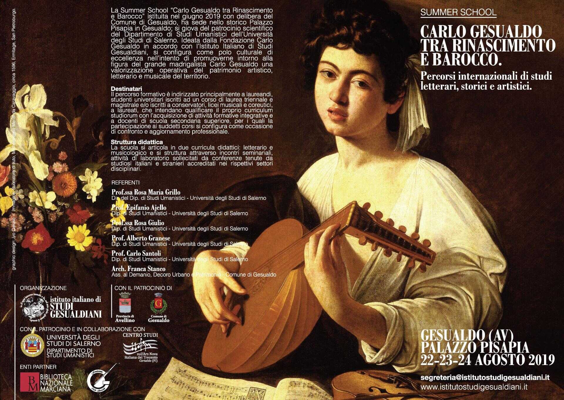 La Summer School, Carlo Gesualdo tra Rinascimento e Barocco, istituita nel giugno ’19 con delibera del Comune di Gesualdo, ha sede nello storico Palazzo Pisapia in Gesualdo. Ideata dalla Fondazione Carlo Gesualdo in accordo con l’Istituto Italiano di Studi Gesualdiani, si configura come polo culturale di eccellenza nell’intento di promuoverne intorno alla figura del grande madrigalista Carlo Gesualdo una valorizzazione operativa del patrimonio artistico, letterario e musicale del territorio.