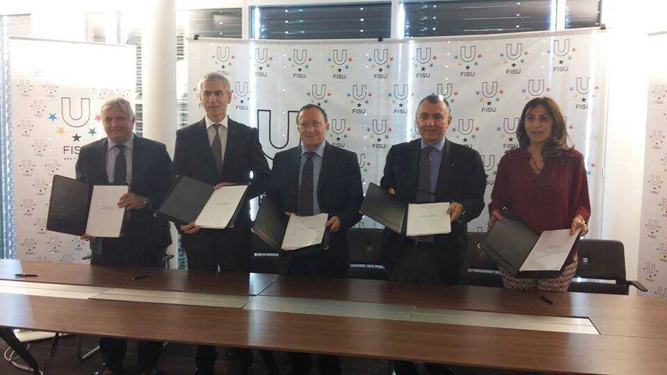 L’atto è stato firmato da Oleg Matysin, Presidente della FISU, Lorenzo Lentini, Presidente del CUSI: Centro Universitario Sportivo Italiano, Fulvio Bonavitacola, vicepresidente della Regione Campania, Almerina Bove, Commissario straordinario dell’Agenzia regionale Universiadi 2019.