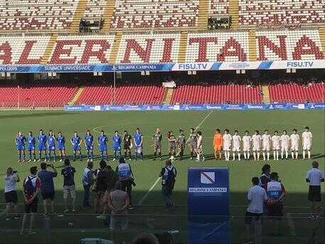 La Nazionale femminile giapponese di calcio supera 2-1 l’Italia allo stadio Arechi di Salerno e vola al comando del girone D delle Universiadi. Una gara interpretata meglio dalle ragazze del ct Mochizuki che, al cospetto delle padrone di casa, dimostrano di avere un’ottima organizzazione di gioco e una miglior condizione atletica. Le azzurre, invece, sono apparse un po’ troppo leggere in fase offensiva. L’atteggiamento premia le ragazze in maglia bianca che al 18′ sbloccano il risultato con una conclusione dal limite di Koyama che s’insacca nel sette dove Capelletti non può arrivare. Il vantaggio dà fiducia al Giappone che al 24′ va vicino al raddoppio con Imada, brava a prendere il tempo alla retroguardia azzurra ma non a inquadrare lo specchio della porta. Il pericolo subito scuote l’Italia che con il passare dei minuti riesce a riorganizzarsi. Bonfantini quando accelera mette in difficoltà la retroguardia giapponese che rischia in un paio di circostanze. Il forcing al 30′ premia le azzurre: sugli sviluppi di un’azione insistita di Bonfantini, la palla arriva a Goldoni che con un diagonale forte e preciso batte Fukuta. Sul risultato di parità le due squadre calano vistosamente l’andatura, anche per via del gran caldo che rende necessario l’utilizzo dei due time-out, uno per tempo. Il Giappone nella ripresa ne ha di più e sfiora il gol del 2-1 in un paio di circostanze. Rete che arriva alla mezz’ora con Koyama, brava a bucare centralmente la difesa azzurra e a depositare il pallone in fondo al sacco.