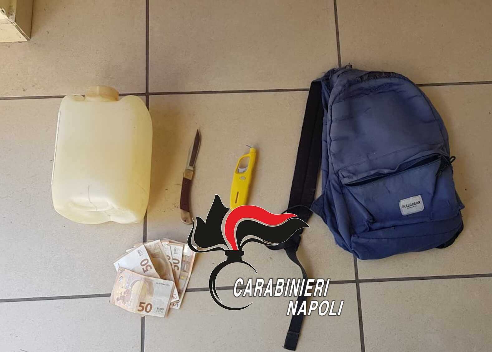 Cosparge di benzina un’agenzia e puntando un coltello chiede soldi. 56enne arrestato dai Carabinieri.