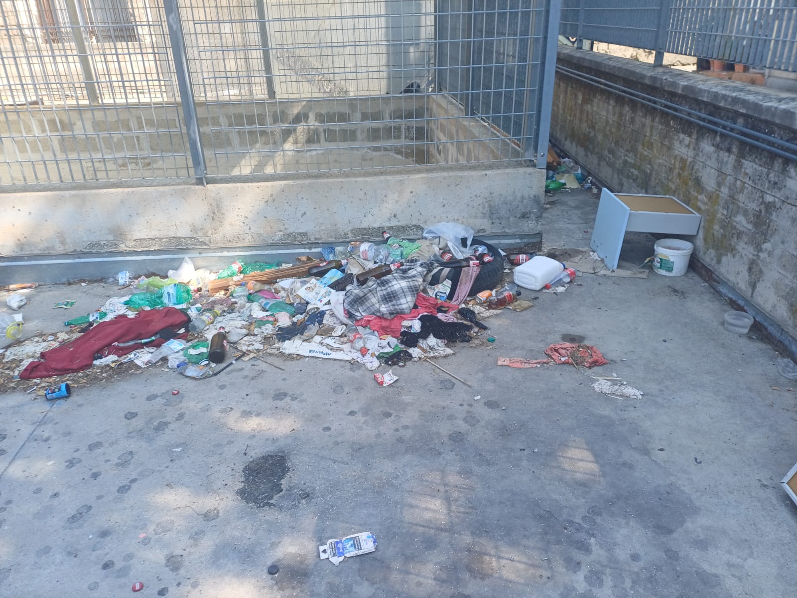 Rifiuti disseminati ovunque, sacchi dell’immondizia abbandonati senza scrupolo, residui di bivacchi improvvisati: questa è l’attuale fotografia di uno spiazzale che, anziché essere ordinato e funzionale, è diventato un angolo di vergogna cittadina. Il dettaglio grottesco?