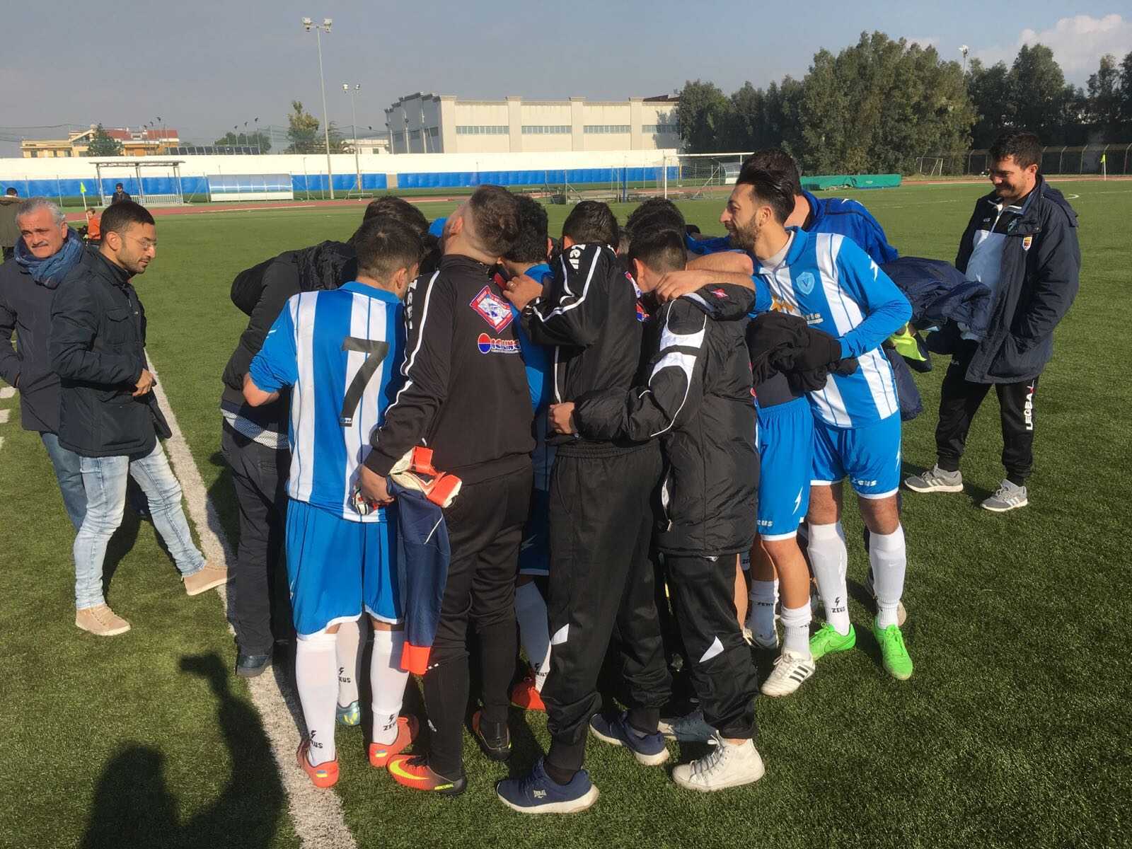 Gara completamente nelle mani dei padroni di casa che dall’inizio si riversano nella metà campo degli ospiti. Nella prima frazione qualche indugio di troppo, nella ripresa più determinazione. Alla mezz’ora del secondo tempo il solito Collaro con una delle sue “maledette” (punizione dal limite) trova l’incrocio, troppa perfetta la traiettoria. Poi in extremis arriva il gol: ennesimo corner, l’ultimo a toccare la palla di testa è Palladino, il portiere smanaccia sotto la traversa ma il direttore di gara indica che la sfera ha superato la linea. Il resto è una sfrenata corsa del difensore bianco-azzurro verso il papà a bordo campo, una dedica speciale.