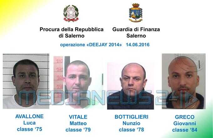 Numerose le perquisizioni eseguite presso abitazioni e negozi di Salerno e delle province di Napoli, Pavia e Modena. Nell’ambito dell’operazione “Deejay 2014” è stato anche eseguito il sequestro di 2 veicoli appartenenti agli indagati.